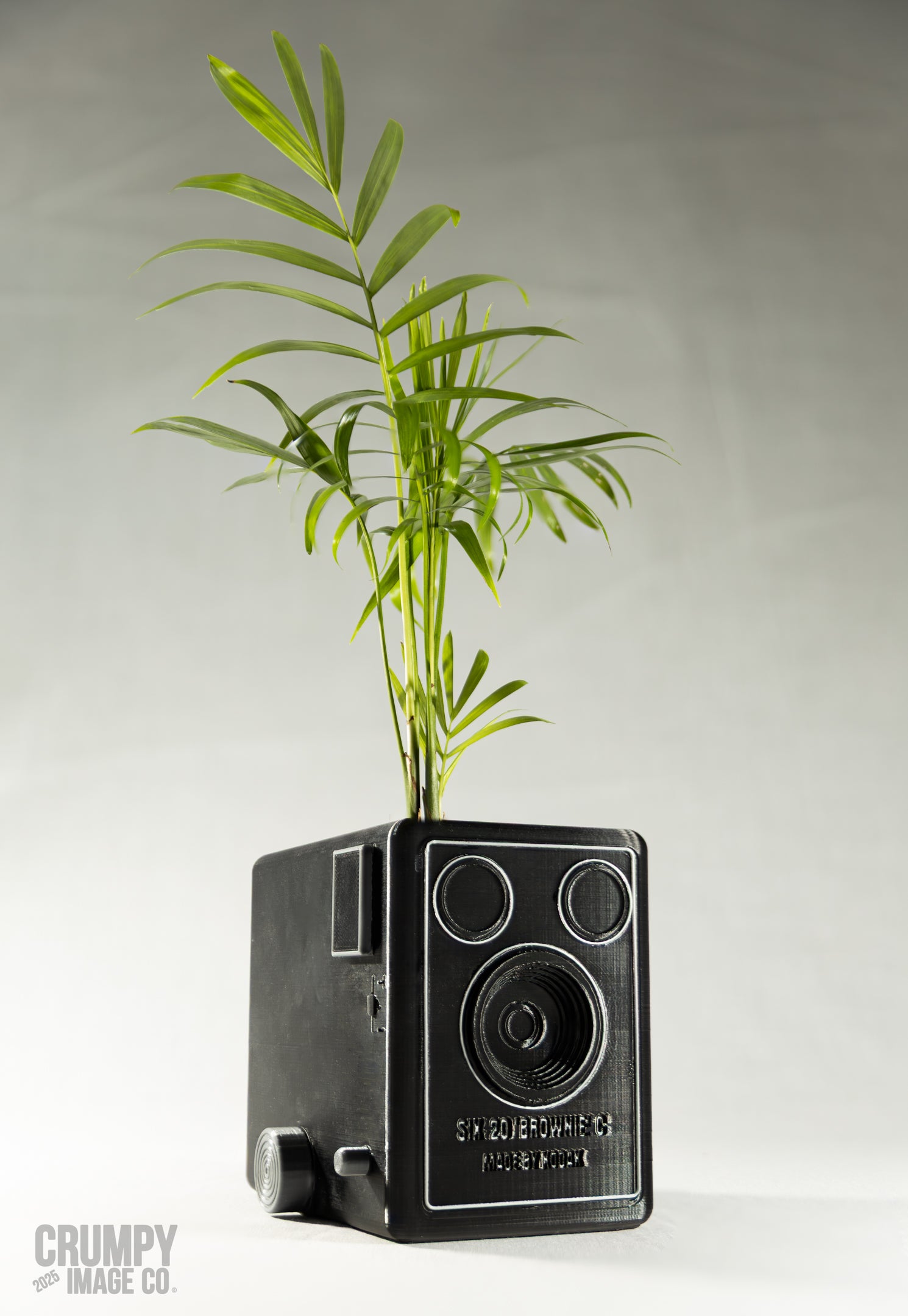 Add a touch of vintage charm to your space with our 3D-printed planter, designed to be a stunning replica of the classic Kodak SIX-20 'BROWNIE' C Brownie box camera. It's the perfect conversation starter and a unique gift for any photographer, history buff, or plant lover. Ideal for succulents, cacti and small houseplants such as the parlour palm or philodendron pictured. Available in classic and modern colour combinations. Durable, high-quality 3D print, sure to impress. * Plants and accessories not included.